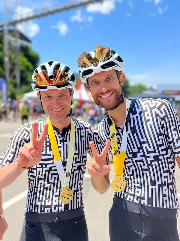13h30 – Je viens de terminer l’étape du tour en 6h24. L’organisation a décidé de neutraliser la dernière descente pour limiter les risques d’accidents. Je ne suis pas là pour prendre des photos, je demande aux mecs de se pousser et je me lance vers Morzine. La descente est assez ardue et pentue. Je manque de perdre le contrôle de ma roue avant à cause d’un caillou, je suis encore lucide je rattrape le coup sans trop de difficulté. Je laisse filer sans prendre de risques inconsidérés et Morzine se présente à moi avec ses virages tortueux. Je passe la ligne, j’en ai fini. J’ai géré ma sortie comme un comptable et me voilà au bout en ayant pris un plaisir énorme. Je retrouve les copains qui sont déjà tous ensemble et m’attendent. Je trouve ça cool que tous ces gars qui ne se connaissaient pas, soient là à m’attendre. Rémi et Antoine finissent roue dans roue comme d’habitude aux alentours de la 330e place. Arnaud termine à une magnifique 251e place mais est un peu contrarié à cause d’une chute de son frère intervenue dans la Ramaz, il arrivera malgré tout à rejoindre l’arrivée. Fabien bouclera l’épreuve à la 65e place. Je vous l’ai dit Fabien n’est pas comme vous et moi, enfin surtout pas comme moi. En ce qui me concerne, je visais Top 1000 minimum et j’espérais approcher le Top 750. Je finis à la même place que l’année dernière entre 1150 et 1200. Donc un tout petit peu de déception sur le résultat brut mais le plaisir est tellement supérieur à l’année passée que ça me convient amplement.