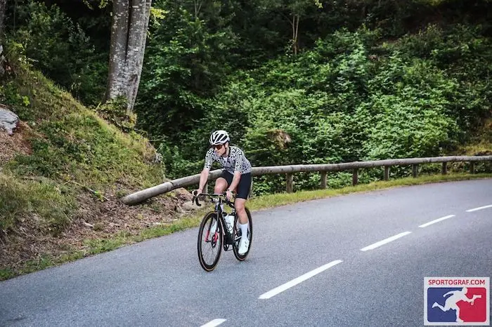 10h40 – Je laisse Mieussy derrière moi, j’ai rendez-vous avec le premier gros morceau de la journée alors que j’ai déjà plus de 90 bornes dans les pattes et 2000 m de dénivelé cumulé. Je m’attaque au Col de la Ramaz qui est un client très sérieux avec ses 14 km de montée à plus de 7%. J’ai fait le choix de partir prudemment et je me tiens à ma zone cible de puissance. Il est évident que les watts baissent un peu par rapport aux premières montées, mais ça reste raisonnable et surtout je reste en Z3 sans trop souffrir. Je commence à voir de nombreux mecs arrêtés sur le bord de la route, à pied, allongés voire carrément en train de se vider en raison de la chaleur et surement du rythme trop soutenu des premières heures. C’est à mon tour de doubler du monde et je reprends des gars par paquet de 30. Le col de la Ramaz se grimpe très bien jusqu’à un passage très difficile que nous appellerons tous « le passage des tunnels » qui mène à la station de Sommand. Je sens que les jambes se font plus raides et il est temps que la montée se termine. La sortie des tunnels permettra d’apprécier les quelques kilomètres menant au sommet et il faut l’avouer, les paysages tout au long du parcours sont littéralement à couper le souffle. J’en finis avec La Ramaz, je fais un arrêt ravito et je me lance dans la descente en direction de l’épouvantail du parcours. Le Col de Joux Plane. Je fais toujours bien attention dans les descentes, je ne voudrais pas me mettre au tas par excès de confiance. Dans la descente j’aperçois un panneau qui indique Morzine par les Gets. Ils seront nombreux à emprunter ce raccourci pour éviter le Col de Joux Plane, les pauvres ne savent pas que la remontée par les Gets est loin d’être évidente. Je me mets bien à l’abri au sein d’un groupe pour rejoindre Samoens et traverser la seule vallée de tout le parcours. Guillaume, mon coach, m’avait prédit une arrivée au pied de Joux Plane en 6h00 environ, j’y suis en un peu plus de 5h15. Intérieurement je jubile.