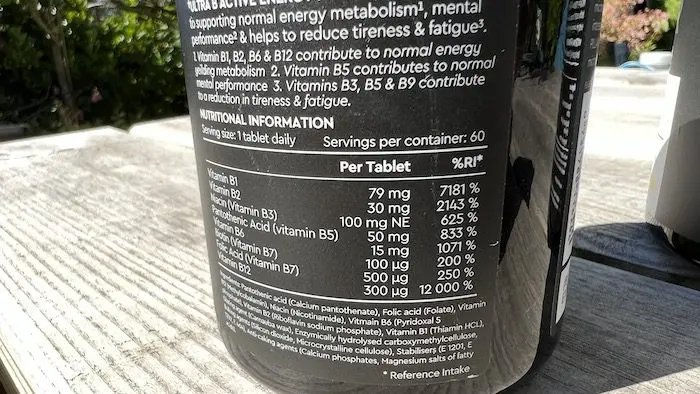 Les vitamines B sont nécessaires la production d’énergie et le bon fonctionnement du système nerveux, et la plupart d’entre-elles ne sont pas stockées par l’organisme en quantité suffisante. Elles ont deux fonctions principales, directement liées à la performance physique et mentale : les vitamines B1, B2, B3, B5, B6 et B8 sont impliquées dans la production d’énergie, et les vitamines B9 et B12 sont nécessaires pour la production de globules rouges, pour la synthèse des protéines, pour la régénération des cellules, et le maintien du fonctionnement du système nerveux central. Pillar propose en plus du Triple Magnesium un complément très riche en vitamines B, l’Ultra B Active, que j’ai consommé en même temps et pendant la même période, soit 50 jours. L’Ultra B active est très fortement dosé, jusqu’à 12 000 % des apports journaliers recommandés pour la vitamine B12. Mais ces recommandations s’adressent à des sédentaires, et les sportifs en nécessitent beaucoup plus. Et quant à ce qui est excédentaire, c’est de toute façon complètement éliminé dans les urines.