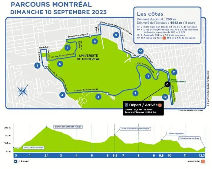 Deux jours après le Grand Prix Cycliste de Québec, une autre classique canadienne est proposée ce dimanche 10 septembre aux coureurs faisant la tournée nord américaine : le Grand Prix Cycliste de Montréal. Les coureurs engagés et par conséquent les favoris, sont les mêmes. Ces derniers sauront certainement gérer l’enchainement des deux courses. Cependant, il faut noter que le dénivelé positif est notablement supérieur avec 4842 m et la distance légèrement plus importante (221 km). Ainsi, les vrais grimpeurs trouveront un terrain plus à leur convenance. Des coureurs comme Adam Yates (UAE Team Emirates), Pello Bilbao (Bahrain Victorious) ou Mattias Skjelmose (Trek Lidl) devraient pouvoir jouer les premiers rôles, en plus des protagonistes de la course au départ de Québec, détaillée ici.