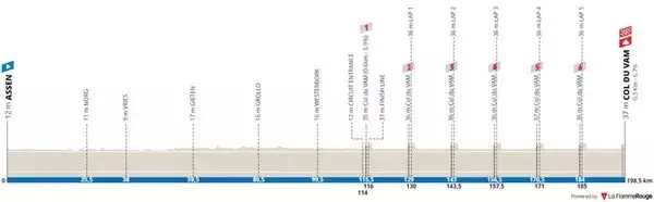 - 12 h 15 – 17 h 00 : Course en ligne Hommes Élite (199,8 km)