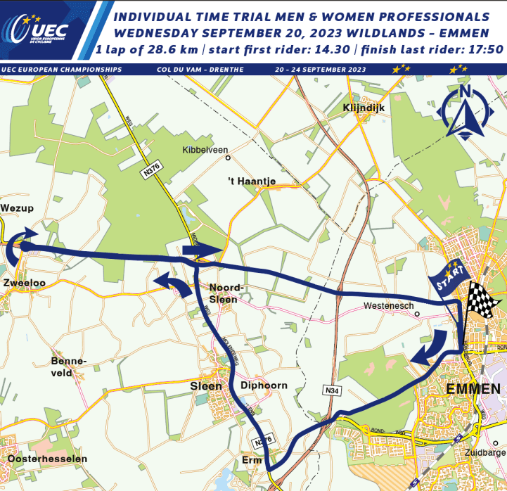 - 13 h 05 – 14 h 10 : CLM Hommes U23 (20,6 km)