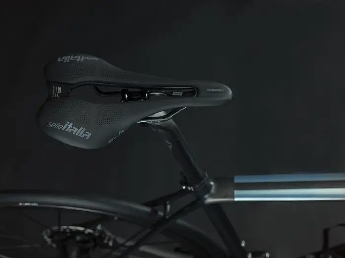 La fourche et le cadre du SL sont en fibre de carbone T1100 G, imprégnée d’une résine spéciale qui rend l’ensemble très homogène, rigide et, dans le même temps, incroyablement léger. Le cadre du nouveau SL ne pèse en effet que 660 g (taille M sans la peinture).