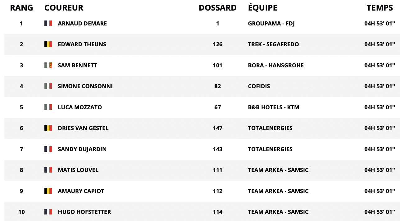 Paris-Tours 2023, une des dernières classiques de la saison, se déroule dimanche 8 octobre, entre Chartres et Tours sur 213,5 km. Elle propose un parcours plat mais exposé au vent et 10 km de chemins de vigne répartis en 10 secteurs. En 2021 et 2022, le Français Arnaud Démare s’est imposé. Le Picard, récent vainqueur du Tour de Vendée et de Paris-Bourges sous ses nouvelles couleurs Arkea Samsic, est donc au départ pour un triplé historique. Il rejoindrait alors le Français Paul Maye, les Belges Gustave Daneels et Guido Reybrouck ainsi que l’Allemand Eric Zabel au sommet du palmarès, au nombre de victoires. Attention également à un autre tricolore, Christophe Laporte (Jumbo-Visma), le nouveau champion d’Europe, dont les qualités de puncheur peuvent faire des étincelles sur le final de la Classique des feuilles mortes. Retrouvez la carte du parcours, le profil, la liste des chemins de vigne, les horaires de diffusion TV et les équipes engagées sur cette 117e édition.