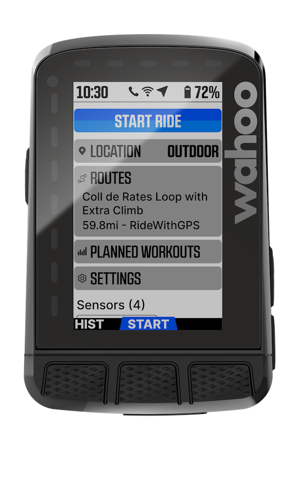 À la base, se trouve un menu révisité qui sera éventuellement affiché à l’utilisateur au démarrage du compteur. L’interface utilisateur révisée facilite le chargement d’un itinéraire ou d’un entraînement planifié et vérifie que les bons capteurs sont appairés. Vous pouvez également afficher sans effort d’autres données clés telles que l’état du signal GPS, l’état du WiFi, la connexion avec le téléphone et l’heure de la journée.