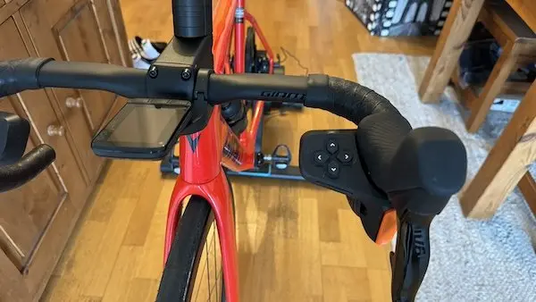 - La possibilité de changer de vitesse virtuellement en utilisant le Zwift Hub One équipé du pignon unique Zwift Cog, et à la place du Zwift Click. Les changements de rapport s’effectuent en appuyant sur des boutons latéraux des deux manettes. Il est juste un peu regrettable que l’enclenchement ressenti à chaque action ne soit pas aussi franc qu’avec le Zwift Click.