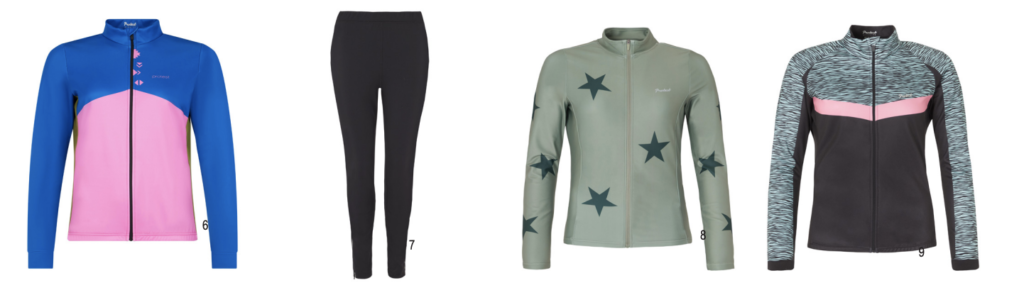 1) PRTGERRIE Jersey manches longues – 89.99€ / 2) PRTBRASVEL Jersey manches longues – 89.99€ / 3) PRTROOKS Cuissards – 79.99€ / 4) PRTANISH Veste – 119.99€