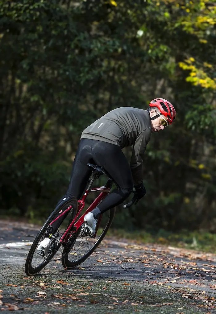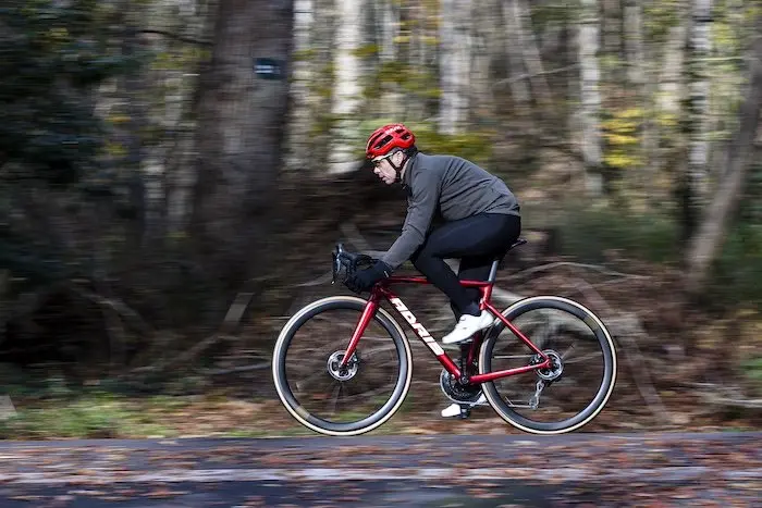 Reste que le vélo se montre très précis au moment des changements de direction et de l’inscription dans les virages qui s’enchaînent. J’ai pris très vite la mesure de ce vélo, je me suis senti à l’aise dessus après quelques kilomètres seulement, malgré des premières sorties sur un sol humide et gras comme souvent au début de la période hivernale. En termes de confort, si on n’est pas en présence d’un vélo de cyclotouriste, le comportement des pneus est appréciable pour diminuer les petites vibrations sur les revêtements rugueux. Globalement, le vélo n’a pas tendance à rebondir, ni à remonter les grosses irrégularités du bitume. Il serait encore meilleur dans le domaine avec des pneus de 28, voire de 30 pour ceux qui voient encore plus gros.