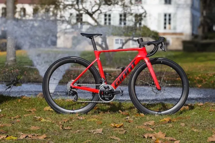 Vélo typé aéro dans la famille Giant, le Propel est décliné en trois niveaux de gamme pour le kit cadre : Advanced pour le modèle d’accès (à partir de 3000 € pour le vélo complet), Advanced Pro comme la monture testée ici en milieu de gamme avec des fibres de carbone de niveau supérieur (à partir de 5600 € pour ce vélo en Sram Rival AXS et roues carbone) et Advanced SL pour la version la plus huppée utilisée par les professionnels du Team Jayco AlUla, qui est l’un des vélos aérodynamiques les plus légers du peloton World Tour (à partir de 9200 €).