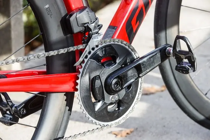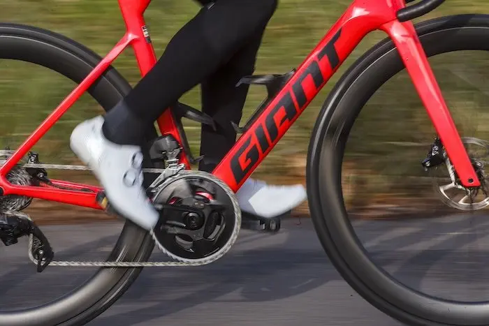 Le vélo est livré avec un capteur de puissance intégré dans le pédalier, ce qui relève encore fois d’une belle performance compte tenu de son prix. Giant propose son propre capteur Power Halo placé dans l’étoile du pédalier, avec la mesure de l’équilibre gauche/droite et une précision revendiquée de +/-1,5 %. Je n’ai pas été complètement convaincu par ce capteur, qui m’a donné des valeurs pas vraiment cohérentes malgré un calibrage sur mon compteur avant chaque sortie. Mais à dire vrai, je n’ai pas pris le temps de mettre le nez dans l’application dédiée Giant’s RideLink pour voir s’il y avait des mises à jour à effectuer ou une procédure particulière pour l’étalonnage, puisque ce n’était pas l’objet de ce test de vélo. Cela reste néanmoins quelque chose à creuser à l’avenir.