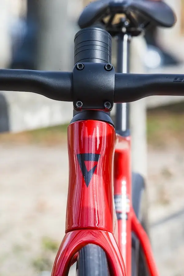 Ensuite parce que le Propel offre une intégration totale des durites de freins dans le cadre et la douille de direction, en passant par un poste de pilotage bien conçu formé par un cintre et donc une potence réglables. C’est joliment fait, il n’y a pas grand chose qui dépasse, et le système reste pratique à l’usage, notamment pour les ajustements de position. Dans l’ensemble d’ailleurs, la finition du vélo n’appelle que des commentaires positifs.