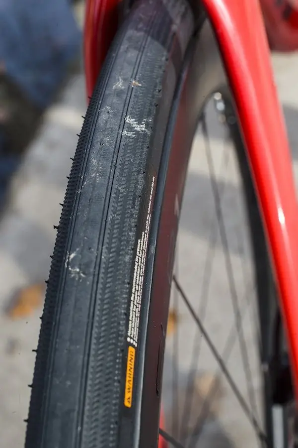 Enfin parce que même si ce nouveau Propel semble disposer de formes de tubes un peu plus consensuelles que son prédécesseur, il profite de profils tronqués qui ont pour effet d’être autant voire plus performants sur le plan aérodynamique, tout en offrant moins de prise au vent latéral, et moins de poids. D’après Giant, le gain serait d’environ 6 watts à 40 km/h pour l’ensemble du vélo par rapport à l’ancien Propel. Même s’il est situé en milieu de gamme, ce Propel Advanced Pro 1 est vendu avec des jantes en carbone de 50 mm (pour l’aéro) tubeless sans crochet, avec les pneus associés. Là encore, le vélo bénéficie des dernières technologies en vogue, que Giant semble parfaitement maîtriser d’ailleurs comme le montrent les pneus Gavia que l’on peut gonfler autour de 6 bar malgré l’absence de crochets à l’intérieur de la jante. Il en résulte un mariage parfait avec les flancs des jantes, pour optimiser l’aérodynamisme et la stabilité des roues, très difficile à mettre en défaut.