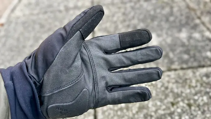 Mais c’est en se penchant un peu plus précisément dans la fiche technique qu’ils deviennent intéressants. Ces gants bénéficient d’une membrane intermédiaire Gore-Tex coupe-vent, imperméable et très respirante. À l’intérieur, on trouve un isolant en Primaloft Gold 200, pour préserver la chaleur. Au niveau de la paume, une surface en cuir synthétique adhérente est relevée par un rembourrage en Poron XRD pour amortir les vibrations. Enfin, le bout du pouce et de l’index sont conçus pour pouvoir utiliser un écran tactile tout en conservant les gants.