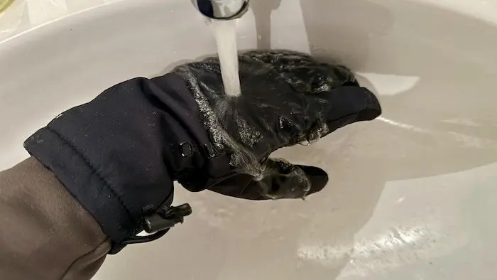 Et si justement les Gore-Tex Grip Primaloft ne m’ont jamais donné « chaud », ils m’ont surtout protégé du froid. Dans ce sens, ils respectent parfaitement leur contrat. Après plus de trois heures sous une pluie froide, alors que l’eau a fini par s’infiltrer partout, que ce soit au niveau des pieds ou même du haut du corps, mes mains sont toujours (presque) au sec. Je dis presque car en fait je finis par ressentir une légère sensation d’humidité, mais sans avoir les mains détrempées. Je peux confirmer le test en passant les gants sous l’eau du robinet. Dans un premier temps, le revêtement du gant est déperlant, mais j’ai l’impression que l’humidité arrive petit à petit à s’infiltrer par les coutures. C’est une sensation très fine, comme une légère moiteur. Mais je ne baigne pas dans l’eau, comme avec la plupart des gants. Sur les Shimano Gore-Tex Grip Primaloft, le poignet haut et qui peut se fermer avec un cordon de serrage limite aussi les risques d’entrée d’eau. Pour cela, il faut glisser les gants sous le bas des manches de la veste d’hiver, pour qu’elle ruisselle par dessus.