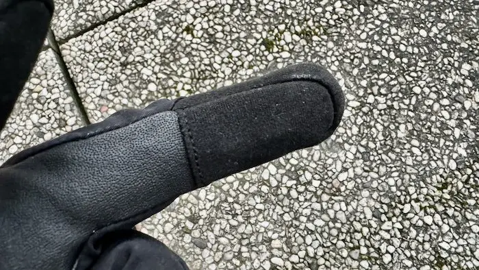 Pourtant, ce n’est pas la sensation de chaleur qui prime quand on enfile ces gants. J’ai été plus frappé par le côté doux de la partie interne, mais qui n’est pas spécialement épaisse ou moelleuse. La sensation neutre qu’ils procurent peut même être un peu inquiétante au moment de partir pour une sortie annoncée comme très humide. Les gants sont aussi un peu raides quand on bouge les doigts, et pourtant j’ai toujours l’habitude de choisir des gants d’hiver d’une taille de plus que mes gants d’été.