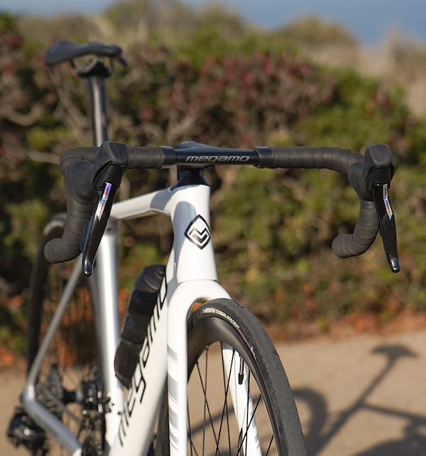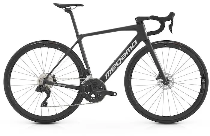 Absolument tous les câbles sont intégrés dans l’ensemble guidon, fourche et cadre. Un système d’intégration Megamo totalement unique qui fait du Raise un vélo encore plus aérodynamique et plus propre. L’intégration complète est réalisée sur les versions électroniques sans fil Shimano Di2 et Sram AXS. Sur le modèle Raise 10 (avec transmission mécanique Shimano), le passage des câbles se fait toujours à l’intérieur de la potence, mais plus à l’intérieur du cintre. Malgré cela, l’esthétique est toujours très soignée et propre.