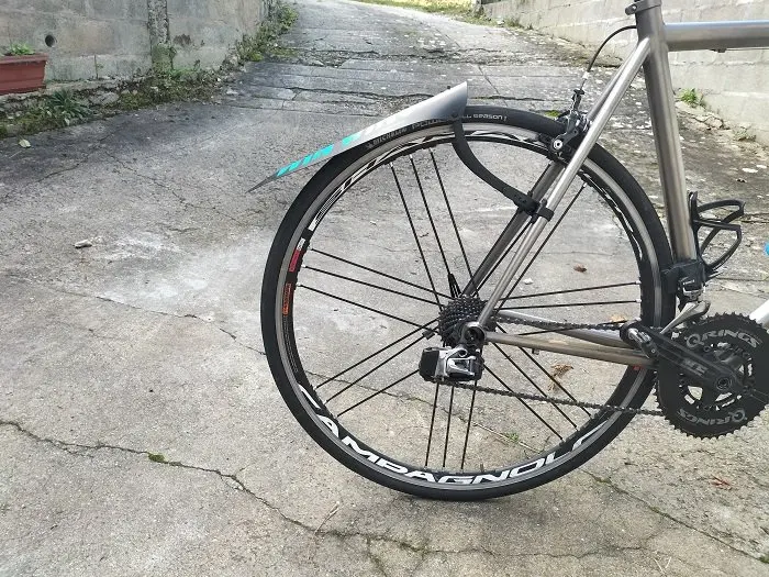 Le placement indiqué du garde boue entre 5 mm et 1 cm du pneu laisse pourtant penser – avant de rouler – qu’il y aura quelques brèves rencontres entre le Win Wing et le pneu sur des ralentisseurs prononcés ou des nids de poule.
