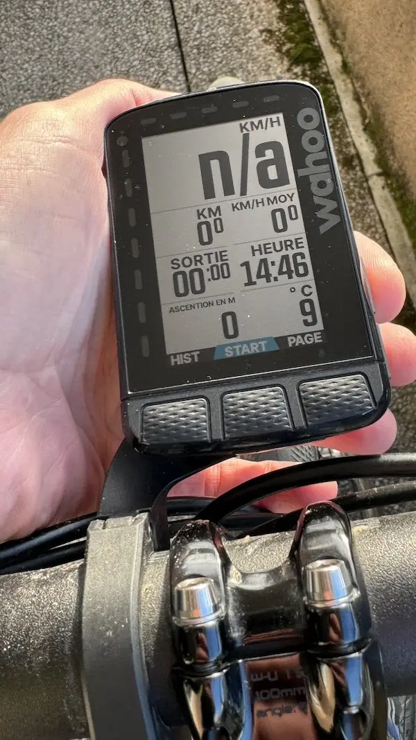 Cette dernière version de l’Elemnt Roam bénéficie d’une mise à niveau matérielle avec l’apparition d’un GPS bi-bande, pour plus de performance. J’ai néanmoins remarqué que le compteur pouvait être très long pour acquérir un signal GPS au début d’une sortie. J’habite en ville, et il me faut parfois attendre pas loin de trois minutes pour que ma trace soit prise en compte. Dans une autre région, au bord de la mer et avec un horizon dégagé, l’acquisition ne prend qu’une trentaine de secondes, mais ça reste plus long qu’avec un Garmin 840. Reste qu’une fois le signal acquis, ça ne bouge plus. Et en zoomant sur les cartes d’activité, la trace est plutôt propre. Enfin, en six semaines je n’ai pas eu à subir le moindre bug, que ce soit en cours d’activité ou au retour, ni même lors de la connexion avec l’application Wahoo. Je trouve le système finalement plus fiable que celui qui est proposé par Garmin.