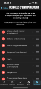 Enfin, le compteur est relié à une application smartphone elle aussi très intuitive et performante. C’est par l’intermédiaire de cette application qu’on peut personnaliser les différentes pages du compteur pour y choisir les éléments que l’on souhaite voir afficher. C’est aussi via cette application que l’on télécharge les résumés des sorties, qui se retrouvent instantanément sur Strava ou sur toute autre plateforme préalablement choisie. La communication entre le compteur et l’application est très rapide et n’a jamais failli pour ce qui me concerne, ce qui n’est pas toujours le cas avec Garmin Connect.