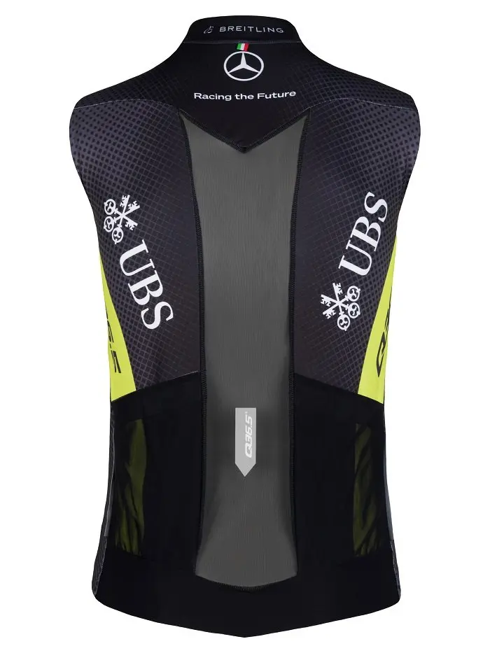La mission de l’équipe, #RacingTheFuture, est clairement mise en évidence sur le panneau arrière du maillot, ancrant leur objectif dans le peloton, tandis que la technologie révolutionnaire de cartographie corporelle et de thermorégulation de Q36.5 est un thème récurrent dans toute la collection Pro Team.