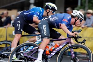 Un temps menacée par une rumeur de fusion avec Jumbo – Visma, l’équipe Soudal – Quick Step semble résolument s’orienter vers les Grands Tours autour du champion du monde de chrono Remco Evenepoel, qui fera ses grands débuts sur le Tour de France en 2024. Pour l’épauler, Mikel Landa a été recruté, mais il aura carte blanche sur la Vuelta. Et quant à Julian Alaphilippe, après deux saisons en demi-teinte, il découvrira le Giro, après une campagne de Classiques où il partagera le leadership avec Evenepoel et Kasper Asgreen. Soudal – Quick Step reste par ailleurs fidèle à Specialized, avec le Tarmac SL8, une transmission Shimano et des composants Roval.