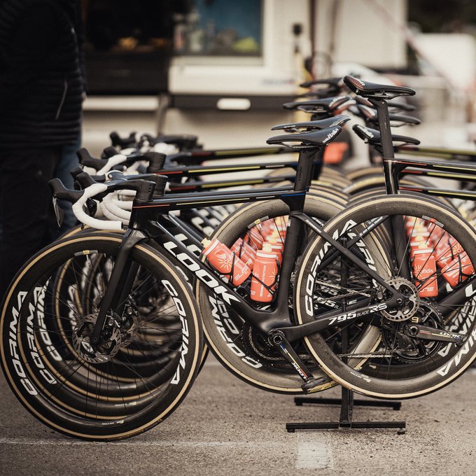 | Cadres et fourches : Look 795 RS, 796 Monoblade RS Roues : Corima Groupes : Shimano Dura-Ace Di2 Pneumatiques : Michelin Selles : Selle Italia Postes de pilotage : Monocoque Look Pédales : Look Keo Blade Carbon Ceramic Ti Compteurs : Wahoo Capteurs de puissance : Look SRM Origin Carbone Porte-bidons : Elite Contact : equipecofidis.com, lookcycle.com |