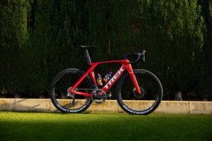 | Cadres et fourches : Trek Madone SLR, Emonda SLR, Domane SLR et Speed Concept Roues : Bontrager Aeolus Groupes : Sram Red AXS Pneumatiques : Pirelli Selles : Bontrager Postes de pilotage : Bontrager Aeolus Pédales : Time Compteurs : Wahoo Capteurs de puissance : Quarq Porte-bidons : Bontrager Contact : racing.trekbikes.com, trekbikes.com |