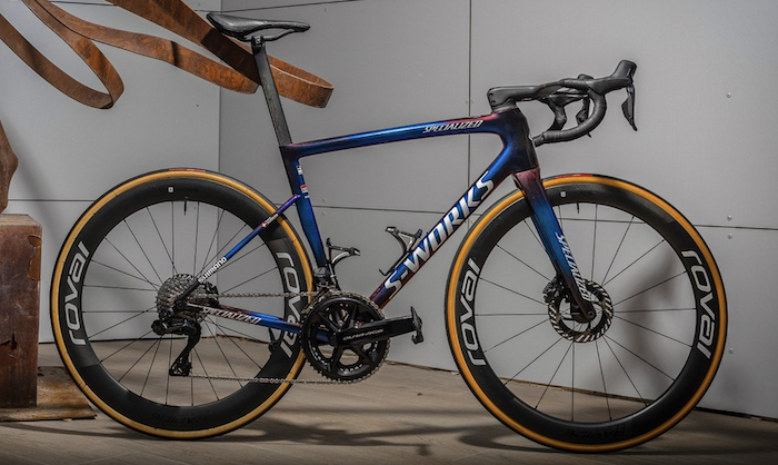 | Cadres et fourches : Specialized Tarmac S-Works SL8, Roubaix S-Works SL8 et Shiv TT Disc Roues : Roval Groupes : Shimano Dura-Ace Di2 Pneumatiques : Specialized Selles : Specialized Postes de pilotage : Roval Pédales : Shimano Dura-Ace Compteurs : Garmin Capteurs de puissance : Shimano Porte-bidons : Tacx Contact : soudal-quickstepteam.com, specialized.com |