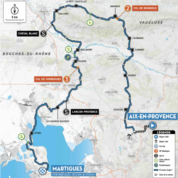 Vendredi 9 février – Etape 1 : Aix-en-Provence – Martigues (157,2 km, 1700m D+)