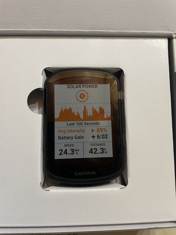 La recharge solaire présente un avantage indéniable pour les utilisateurs paresseux qui oublient souvent de recharger leur compteur ou pour ceux qui effectuent de longues sorties de plus de 15 heures. Après plusieurs sorties prolongées, avec une utilisation intensive de la batterie pour des fonctionnalités telles que le LiveTrack, le capteur de puissance, la fréquence cardiaque et le Garmin Varia, nous avons pu constater que la batterie n’a jamais été déchargée à plus de 50 %. L’autonomie est augmentée d’environ 25 minutes par heure. Bien que cela puisse sembler important sur le papier, en réalité, les gains sont généralement inférieurs à 10 minutes. Il convient de noter que le compteur est rarement exposé directement au soleil, ce qui limite les avantages de la recharge solaire. Cependant, pour les 5 % des cyclistes qui se trouvent dans cette situation, cette fonctionnalité est un véritable atout.