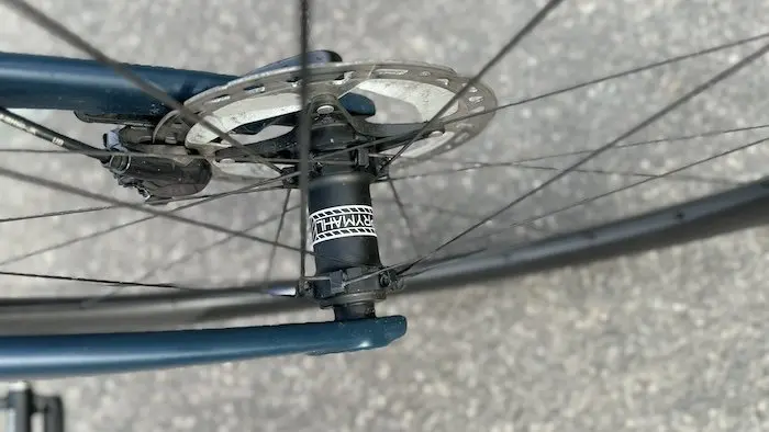 Pour la petite histoire, je précise que le vélo a été fourni au départ avec des pneus tubeless Schwalbe en 28 mm qui avaient déjà un peu roulé. Mais après quatre crevaisons en une semaine, j’ai décidé de remettre des pneus à chambre conformes à ceux qui sont aussi proposés sur le configurateur Origine, à savoir des Hutchinson Fusion 5 Performance, en 700×25 de section.