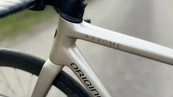 L’ORIGINE AXXOME III GTR en bref… Les + : rapport qualité/prix, confort, nervosité, polyvalence Cadre : Origine Axxome GTR – Fourche : Axxome III in Disc Superlight – Potence : Ritchey Switch Comp (intégrée) – Cintre : BLKTEC R1 Carbone – Freins : Shimano Ultegra 160/160 mm – Dér. Arrière : Shimano Ultegra Di2 12 v. – Leviers : Shimano Ultegra Di2 12 v. – Cassette : Shimano Ultegra 11-30 – Chaîne : Shimano Ultegra 12 v. – Pédalier : Shimano Ultegra 12 v. 50-34 (plateau Rotor 53 pour le test) – Roues : Prymahl Orion C50 Pro Evo – Pneus : Schwalbe Pro One tubeless 700×28 (Hutchinson Fusion 5 700×25 pour le test) – Selle : Selle Italia SLR Boost Superflow– Tige de selle : Ritchey WCS carbone – Poids : 7,320 kg en taille S sans pédales – Nombre de tailles : 6 – Prix : 6239 € (dans cette configuration) – Kit cadre à partir de 2250 €.