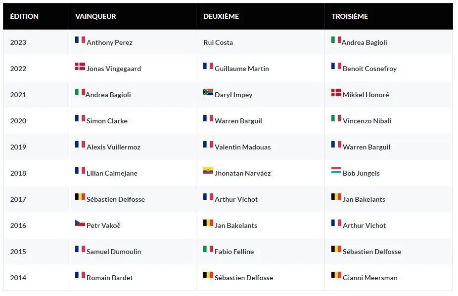 Les podiums des 10 dernières éditions de la Faun Drôme Classic