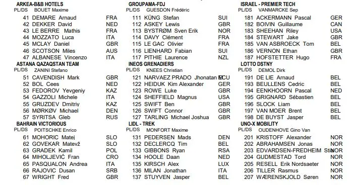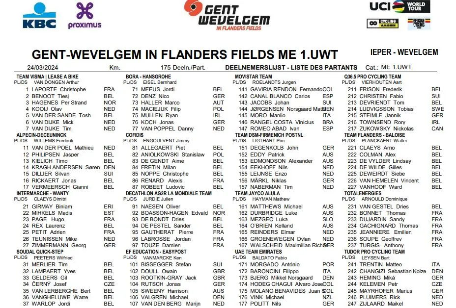 La liste des engagés de Gand-Wevelgem 2024