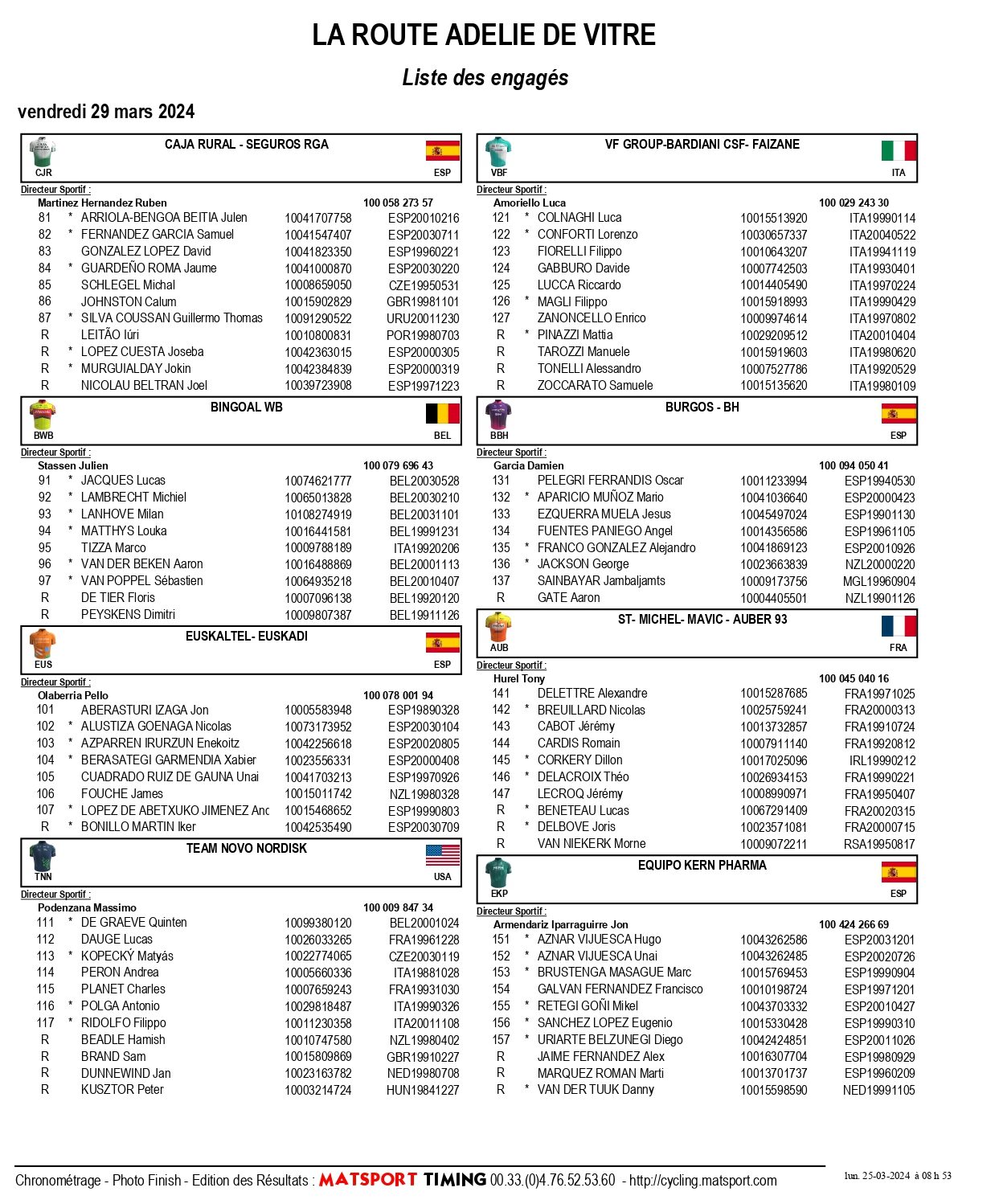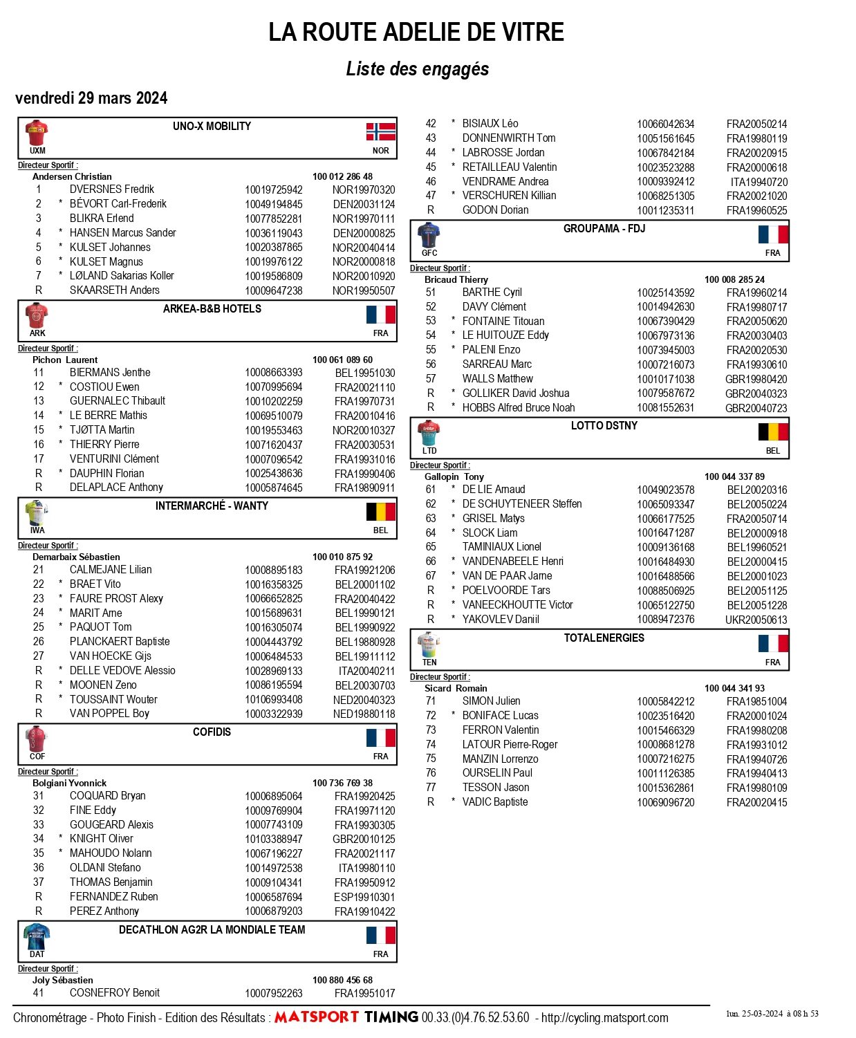 La liste des coureurs engagés sur la Route Adélie de Vitré 2024