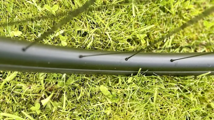24 rayons en acier à l’avant et à l’arrière croisés par deux et avec des têtes de rayons en alu permettent de relier ces moyeux et ces jantes haut de gamme, qui inspirent réellement performance et fiabilité. J’ai souvent entendu de nombreuses critiques à propos des roulements de roues Shimano, mais personnellement, je n’ai jamais eu de problèmes particuliers. Sur les roues Dura-Ace C50, les moyeux tournent comme au premier jour. Les roulements ne sont pas hyper fluides à la main, mais ils restent soft et n’accrochent pas. Sur les roues Ultegra que j’ai énormément utilisées dans des conditions très difficiles (gravel, entrainement hivernal par tous les temps), j’ai dû revoir deux fois le jeu dans les roulements, et il faudrait peut-être que je pense à les changer car ils semblent un peu fatigués. Mais franchement, après plus de deux ans d’usage vraiment intensif, je n’y trouve rien d’anormal. Bref, il n’y a aucune raison qu’il en soit autrement avec les RX880, situées au même niveau de gamme.