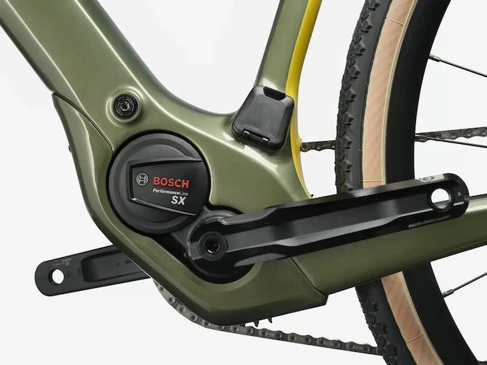 L’unité motrice Bosch SX, légère mais puissante, offre une assistance jusqu’à des cadences plus élevées pour une sensation de pédalage naturelle. Alimenté par une batterie de 400 Wh, elle apporte une puissante accélération jusqu’à 25 km/h puis se désengage en douceur pour un pédalage sans effort à des vitesses plus élevées.