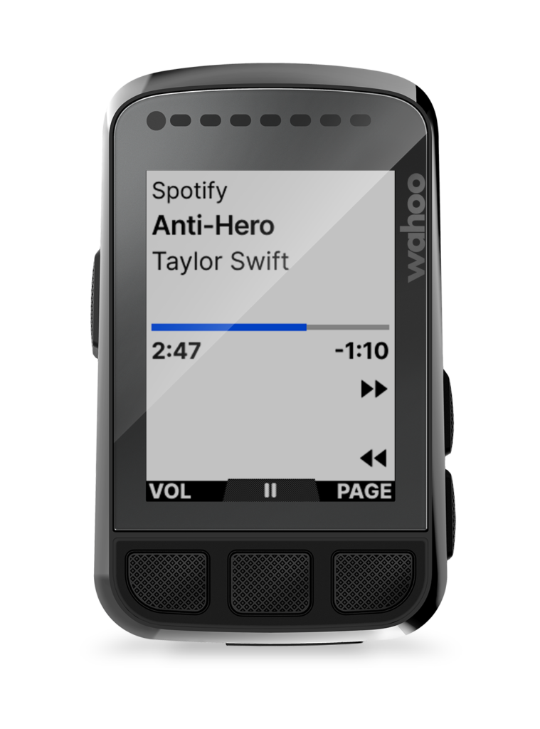 Pour répondre aux besoins en constante évolution des cyclistes d’aujourd’hui, Wahoo introduit le contrôle de la musique dans la série ELEMNT, offrant un contrôle de lecture directement depuis le compteur de vélo. Avec une page dédiée au contrôle de la musique proposant des options telles que Lecture/Pause, Saut et Ajustement du volume, les cyclistes peuvent profiter de leurs morceaux préférés, podcasts ou livres audio sans être distraits par la manipulation de leur téléphone.
