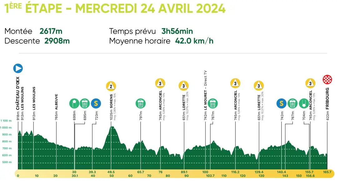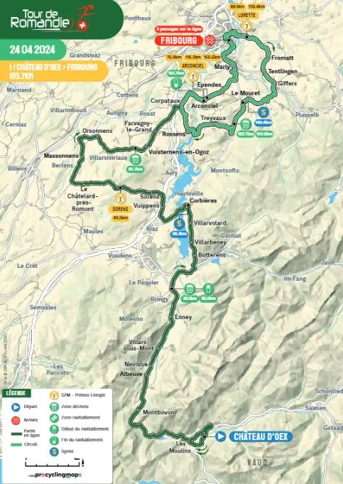 Les cartes et profils des étapes du Tour de Romandie 2024