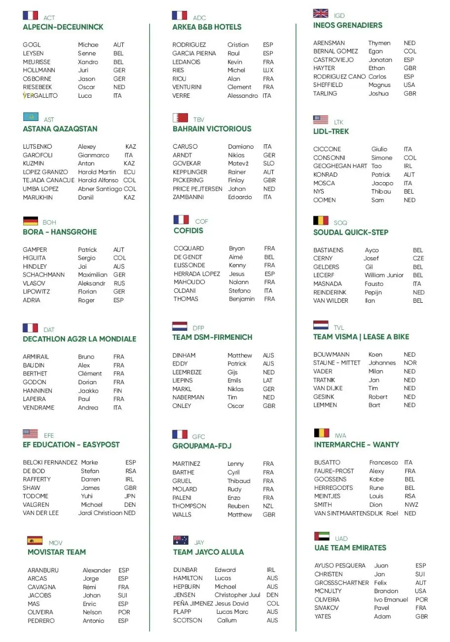 Les engagés du Tour de Romandie 2024