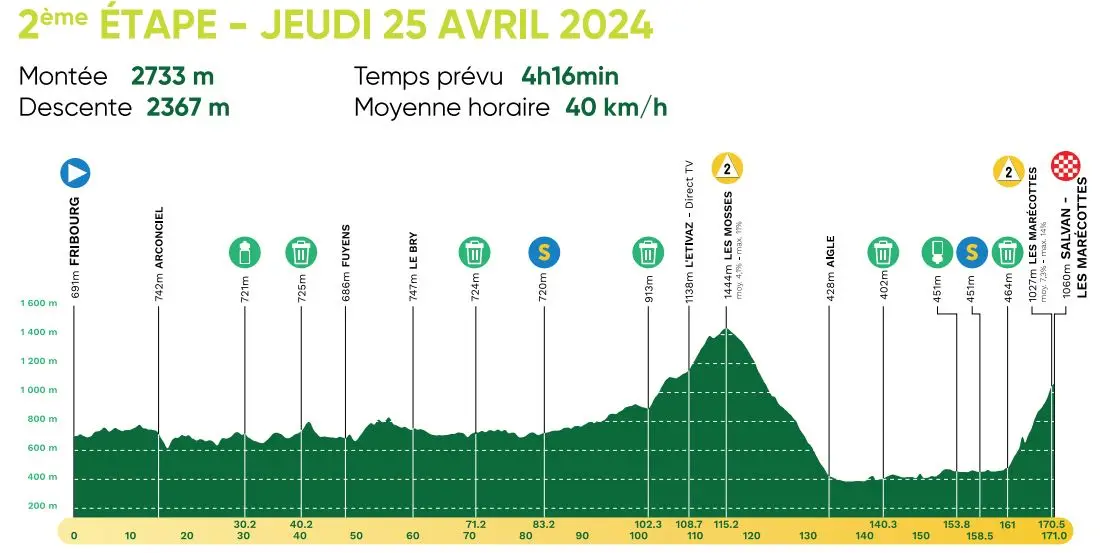 - Jeudi 25 avril – 2e étape – Fribourg / Salvan – Les Marécottes