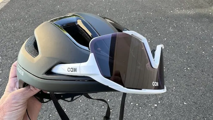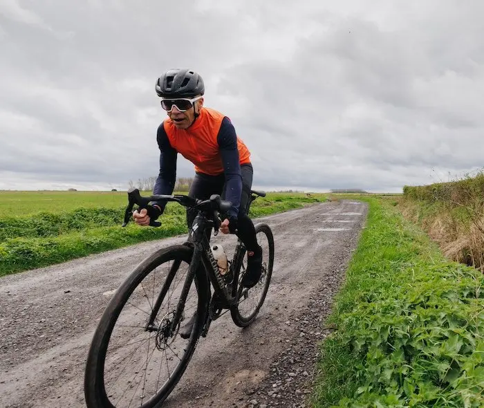Je n’ai pas pu rouler sous des températures au-dessus de 25°C avec le Search, mais je peux confirmer que celui-ci est tout de même parfaitement aéré lorsque la température monte, notamment après quelques ascensions en Gravel abordées à basse vitesse, c’est-à-dire avec peu d’air qui circule normalement autour du casque. Dans ces conditions, j’ai tendance à vouloir retirer les lunettes pour éviter que la sueur ne coule dans les yeux et sur l’intérieur des verres, et c’est ici d’autant plus pratique que le maintien des branches sur le casque est excellent. Mais si j’ai transpiré de manière habituelle au niveau du front, cela n’a pas été vraiment le cas sur le sommet du crâne. Les grandes ouvertures à l’avant et à l’arrière du casque semble vraiment bien fonctionner pour que l’air circule rapidement et sans stagner sous le casque.