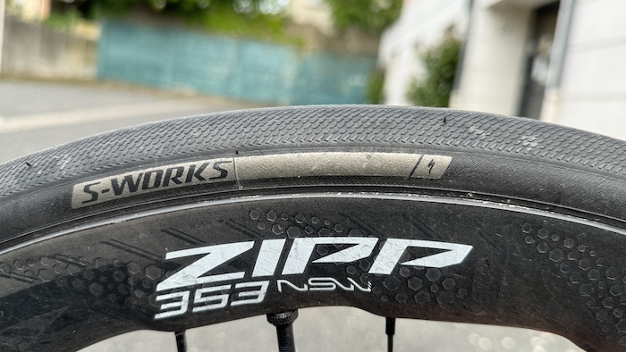 Enfin, c’est surtout en termes d’endurance que le S-Works Turbo 2BR m’a surpris. Je n’ai d’abord eu à subir aucune crevaison en 4000 km. Oui, aucune ! La bande de roulement est marquée par quelques coupures, mais sans excès. Elle est toujours assez ronde, et je peux toujours voir les indicateurs d’usure sur le pneu arrière. Sur les épaulements, les petits pavés destinés à évacuer l’humidité semblent comme neufs. Je pense que les 6000 km sont facilement atteignables avec ce pneu. Une vrai bonne surprise pour un modèle finalement assez performant. Donc à moins de rechercher spécifiquement de plus grosses sections ou de vouloir rouler sur des terrains plus rugueux comme des pavés ou du Gravel léger, le S-Works Turbo 2BR n’est pas réellement supplanté par le S-Works Mondo dans le domaine de l’endurance. C’est plutôt une bonne nouvelle. Car ce pneumatique, dont le prix est certes assez élevé, propose des prestations recherchées par la très grande majorité des pratiquants sportifs. Ceux qui s’entrainent et qui roulent, et qui ne souhaitent pas faire de la maintenance trop souvent.