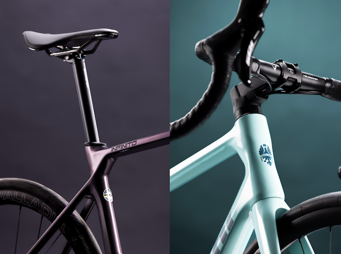 Les deux autres versions sont équipées de groupes mécaniques Shimano 105. Le premier dispose d’un guidon semi-intégré et de roues Velomann Palladium 33 , tandis que le second dispose de roues en aluminium Velomann V30R .