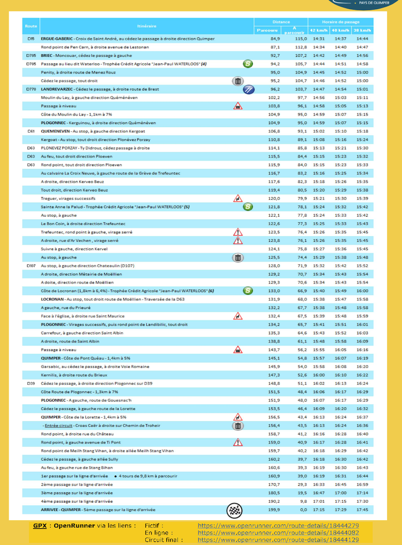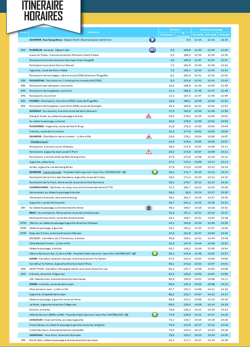 Les horaires de passage du Tour du Finistère 2024