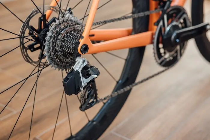 Le dérailleur arrière, défini comme étant au cœur de l’écosystème AXS, est plus léger que la version précédente (-16 g). Compatible avec les transmissions double et mono, il accepte également les quatre combinaisons de cassette désormais proposées, du 10-28 à 10-36. Le galet inférieur passe de 12 à 14 dents pour réduire la courbure de la chaîne et améliorer la fluidité de l’ensemble de la transmission.