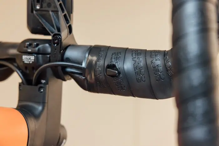 Les poignées Sram Red intègrent également pour la première fois ce que la marque appelle des boutons bonus, en haut des poignées à portée des pouces, sur la partie intérieure. Différentes fonctions peuvent être attribuées à ces boutons en passant par l’application Sram sur smartphone, qu’il s’agisse de changer de vitesse en répétant l’action des leviers eTap placés derrière les leviers de frein, ou d’agir sur le compteur pour changer les pages du menu, ou lancer/arrêter des temps intermédiaires par exemple.