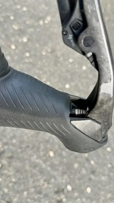 Au niveau des poignées, le confort de prise en main est amélioré grâce à une forme plus longue et plus fine, et surtout à l’abandon de la partie supérieure rehaussée en bout de poignée. Sous la poignée, près du levier, il subsiste des formes un peu acérées là où on peut poser l’index, mais elles ne sont plus blessantes comme sur le modèle précédent.
