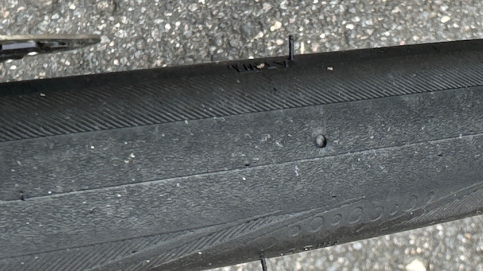 Malheureusement, j’ai crevé du pneu arrière au bout de 600 km, une fois rentré sur mes routes d’entrainement habituelles. Un beau trou en plein milieu de la bande de roulement qui a eu raison de la bande de protection anticrevaison, et trop gros pour permettre au liquide préventif de combler l’orifice. Après quelques secondes de perte de pression rapide, la fuite a cessé, et j’ai cru pouvoir repartir en regonflant à l’aide d’une bombe de CO2. Une réparation vraiment temporaire qui n’a fait que repousser l’échéance de quelques minutes. Seul en pleine campagne avec un pneu arrière crevé et plus de nécessaire de réparation, je n’avais plus que deux solutions : appeler un taxi ou rouler 20 km sur la jante pour rentrer. C’est cette dernière solution que j’ai choisie. Sans abimer la jante au passage, pour démontrer, si besoin était, que les roues Zipp sont plutôt solides ! En revanche, si le pneu crevé a bien continué de protéger le lit de la jante, il était évidemment complètement mort une fois arrivé à destination.