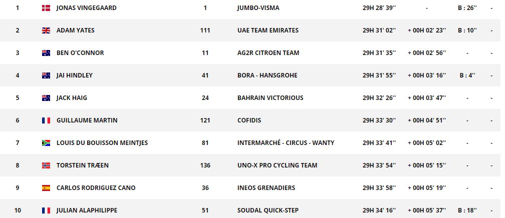 Ineos Grenadiers : Ca.Rodriguez, Fraile (Esp), Tarling (Gbr)